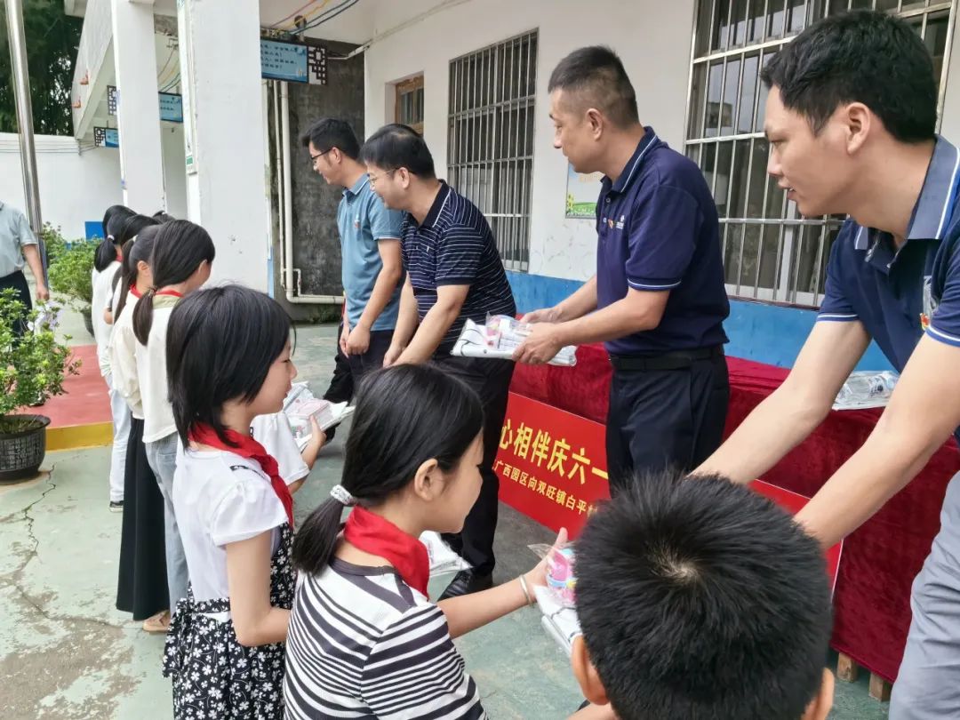 “不管在哪里投資,都要為當?shù)亟?jīng)濟社會做貢獻”的投資理念,改善鄉(xiāng)村兒童學習生活環(huán)境,履行企業(yè)的社會責任,助力形成全社會關心和參與愛心助學的氛圍,5月29日上午,華友廣西園區(qū)到周邊的松旺鎮(zhèn)潭蓮村,雙旺鎮(zhèn)白平村、邦杰村、曾村和中心小學等5所小學走訪慰問,廣西區(qū)域管理中心及各產(chǎn)業(yè)集團廣西基地干部代表為5所小學3700多名學生送上書包、水杯、馬克筆和筆記本等學習用品作為兒童節(jié)禮物。