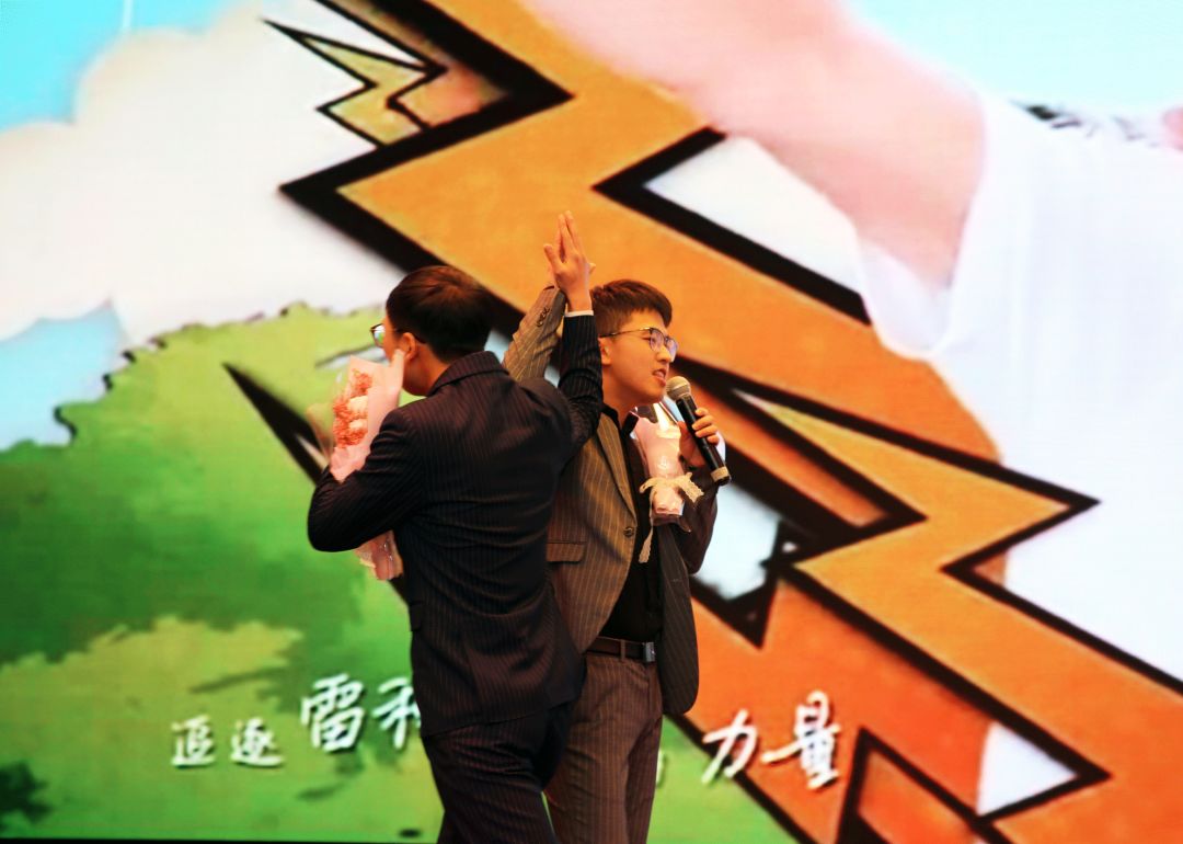 集團(tuán)總裁助理袁忠和品牌建設(shè)總監(jiān)劉強(qiáng),最后也忍不住上臺(tái)秀了一把洪亮的歌喉,贏得滿堂彩!