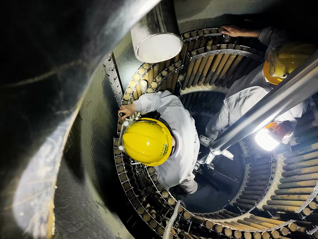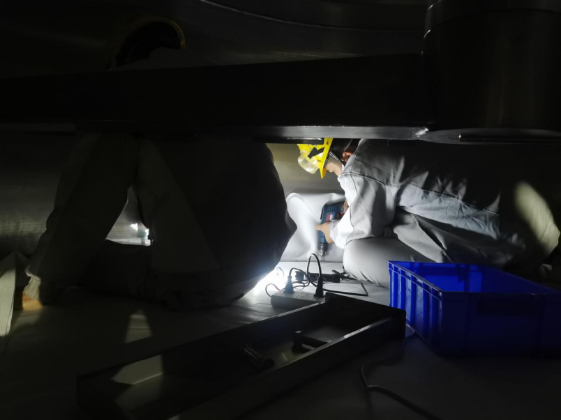 數(shù)不清多少個日夜,他們蜷縮在一個小空間里面。或是檢查設(shè)備,或是安裝管道,或是日常清理,燈光下的他們閃爍著華友人自強(qiáng)不息的精神。
