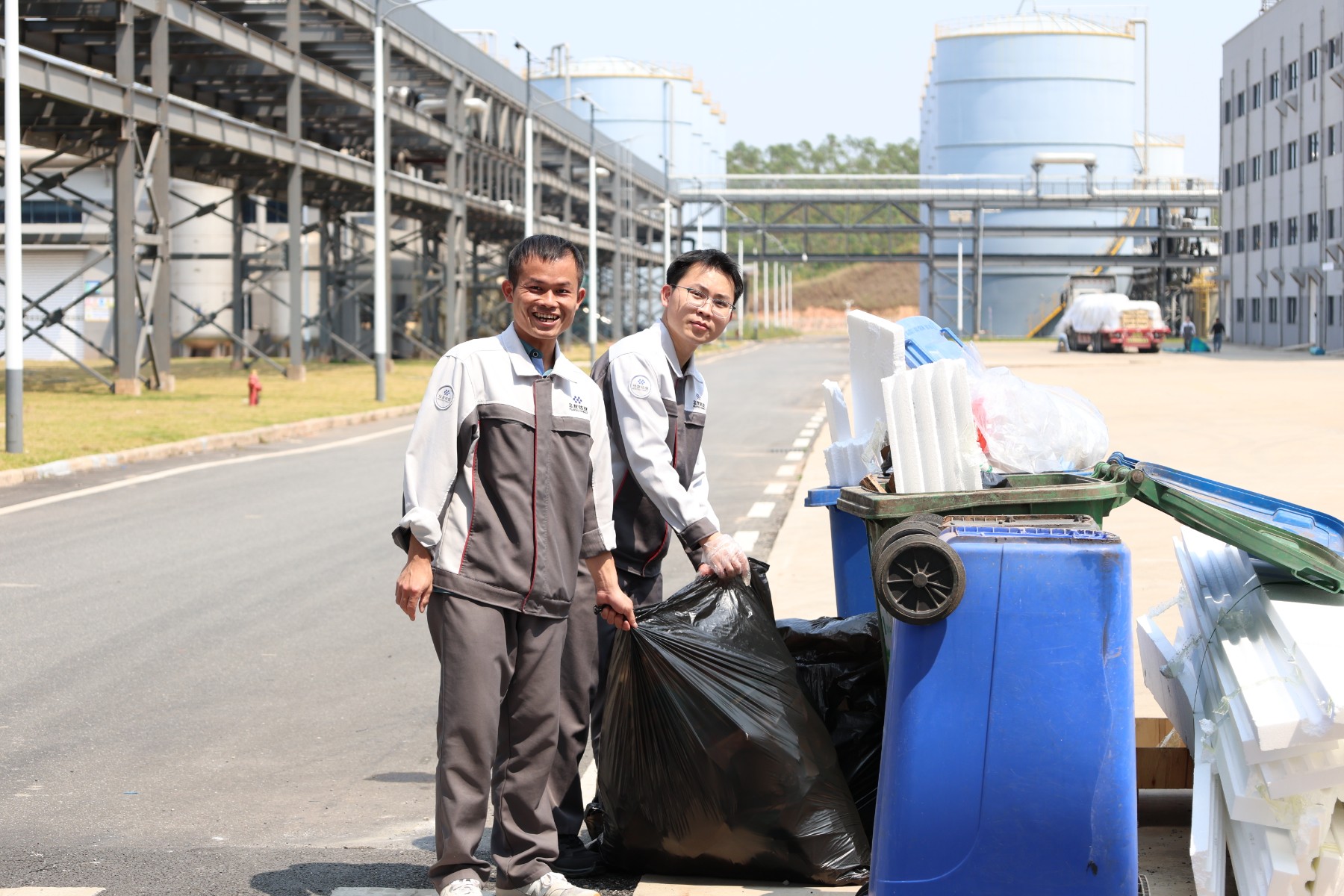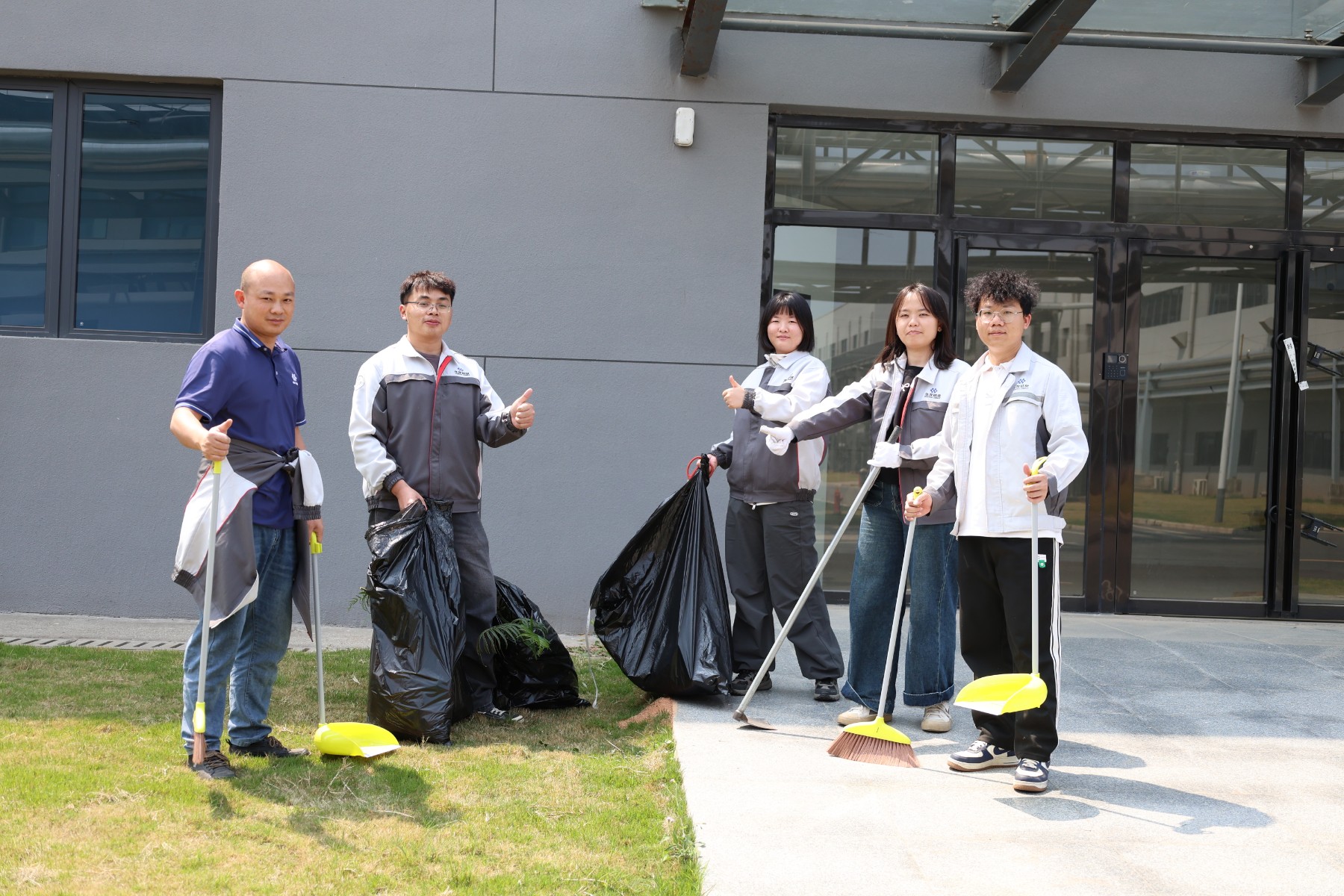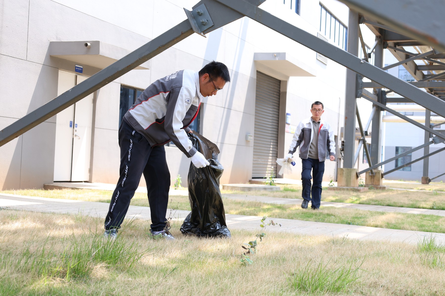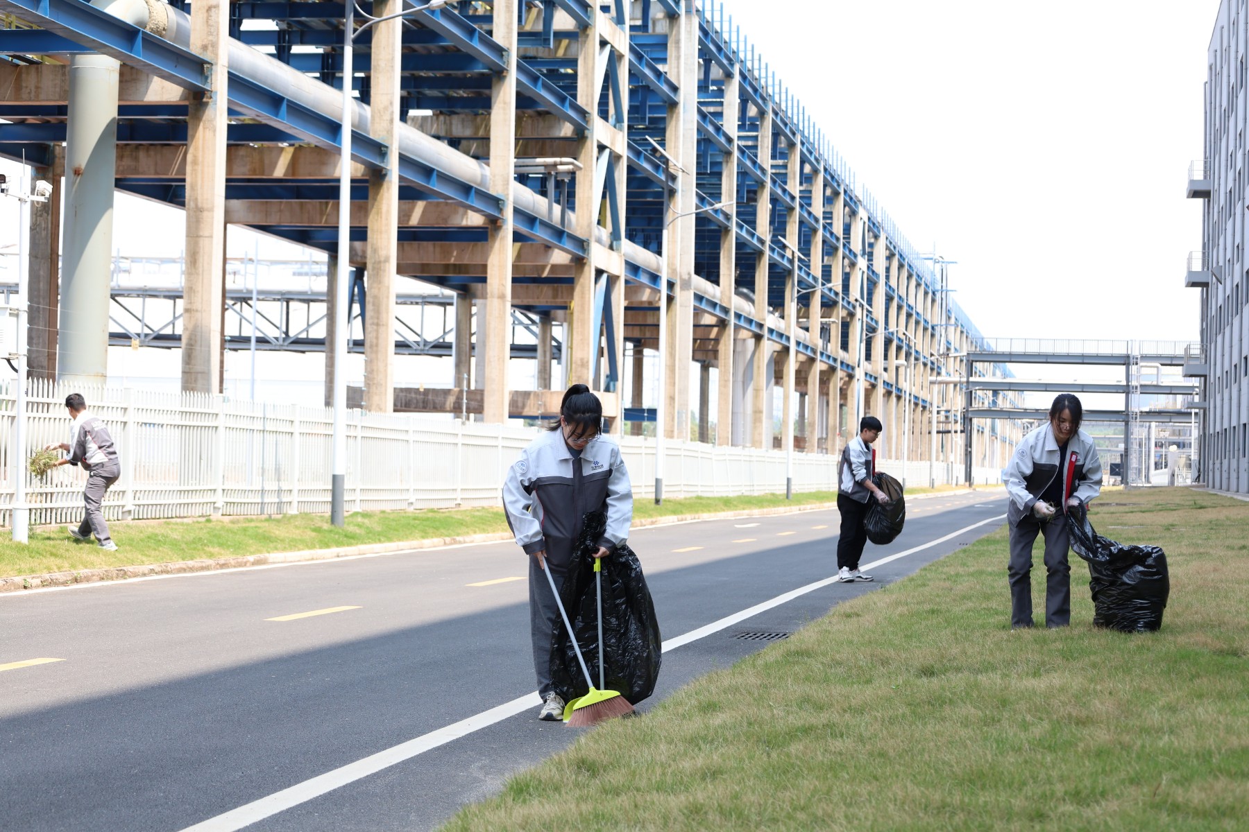 第二組負(fù)責(zé)清掃道路、草坪等公共區(qū)域的垃圾,他們拿著掃帚、垃圾袋等工具,穿梭在廠區(qū)的各個(gè)角落,無(wú)論是隱藏在草叢中的瓶子,還是散落在道路上的紙屑,都逃不過(guò)他們的火眼金睛。