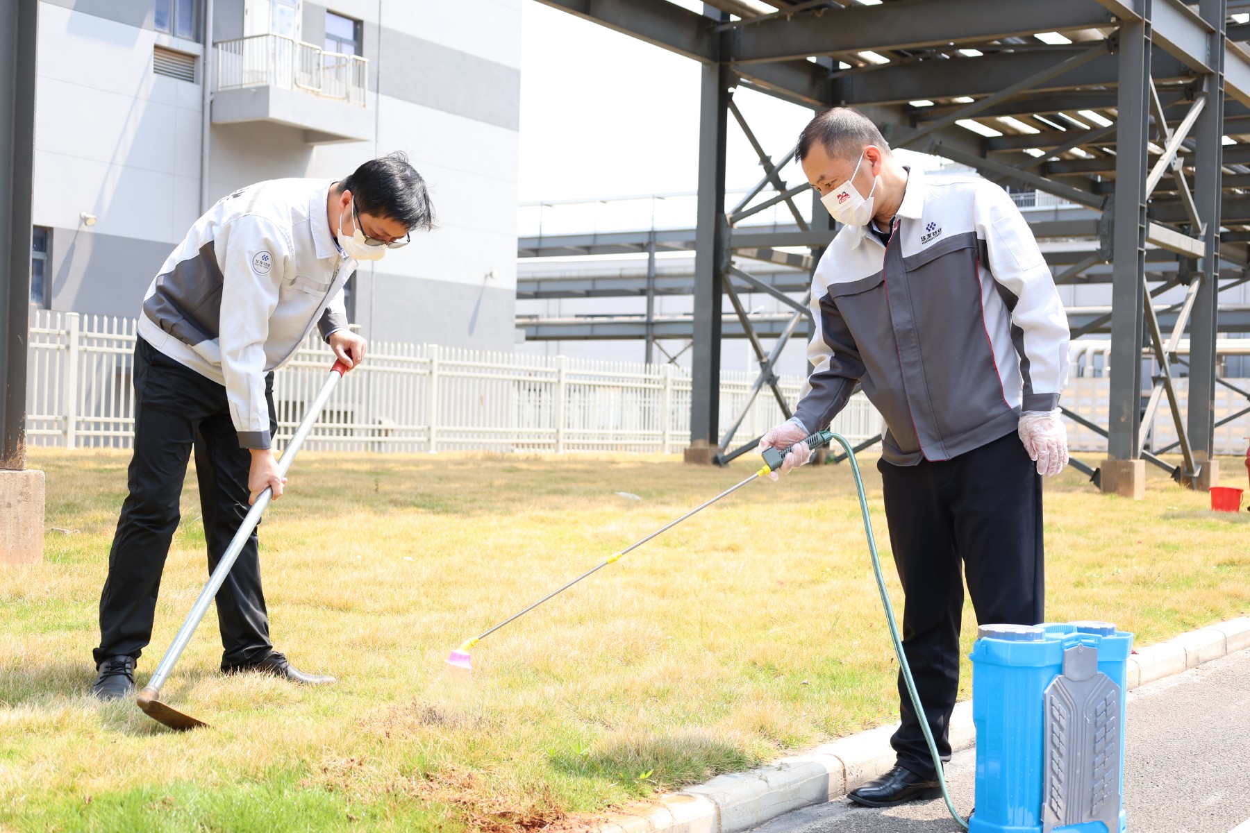 活動(dòng)當(dāng)天,陽(yáng)光明媚,廣西基地全體黨員及各部門(mén)參加人員匯聚在廠區(qū)內(nèi),分為三個(gè)小組5大區(qū)域開(kāi)展清潔、清理與消殺工作。