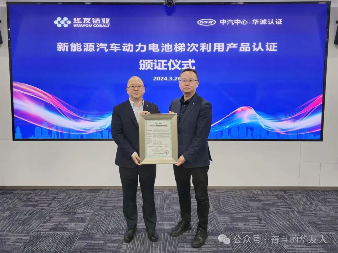 首張動力電池梯次產(chǎn)品認(rèn)證助力江蘇華友能源擦亮“金字招牌”