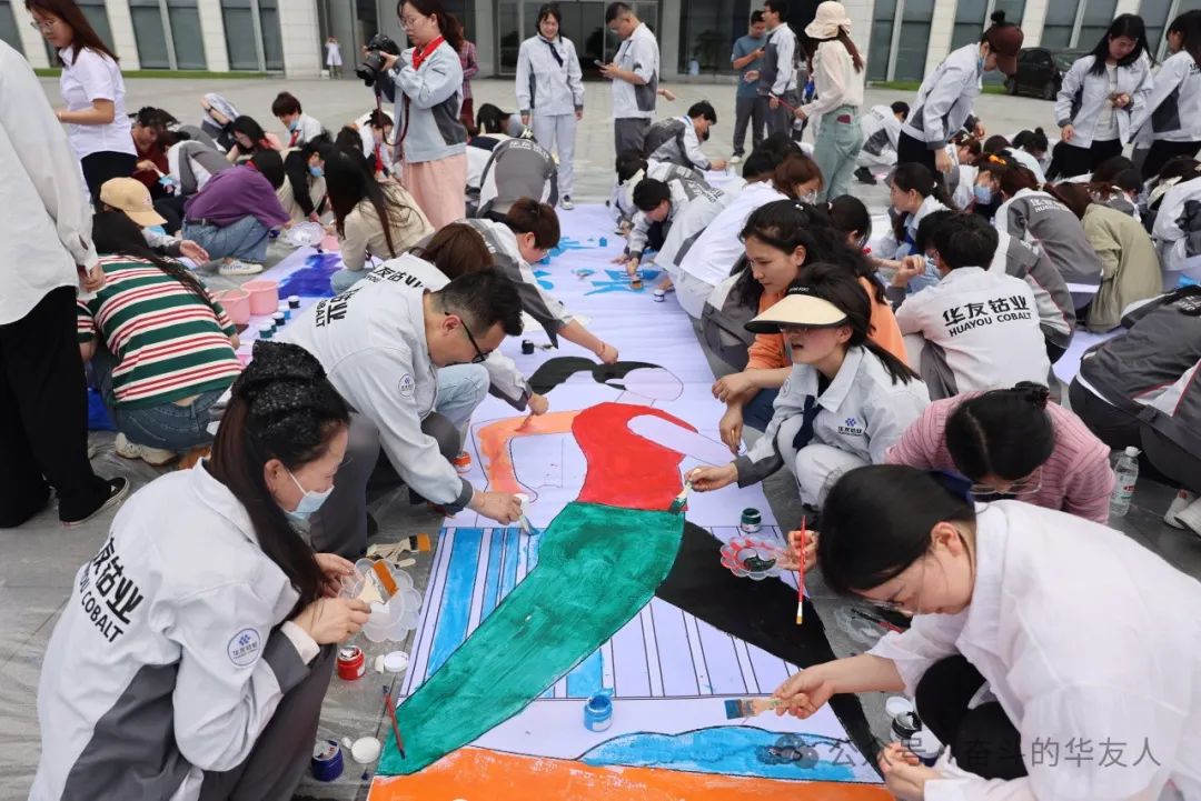 隨著畫布的鋪開,第二個項目開始?;顒又?,大家拿起手中的畫筆,端起五顏六色的顏料,在畫布上恣意揮灑著自己的熱愛與赤誠。通過近1小時的共同創(chuàng)作、潛心描繪,巨畫逐步完成,每一筆都體現(xiàn)出華友人的風(fēng)采與魅力,每個人都是這幅巨畫誕生過程中不可或缺的一環(huán)。