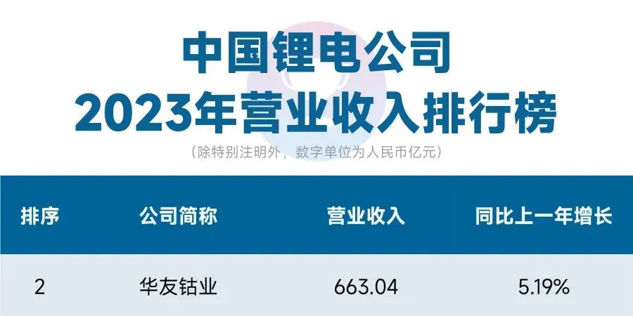 近期,24潮產(chǎn)業(yè)研究院(TTIR)根據(jù)國內(nèi)111家鋰電上市/IPO公司最新年報(2023年財報)中營收、預收款、歸母凈利潤、對外投資、經(jīng)營與籌資現(xiàn)金流等不同維度數(shù)據(jù)發(fā)布了十大排行榜。在2023年中國鋰電加速產(chǎn)業(yè)洗牌與博弈進程中,華友鈷業(yè)迎難而上、破難而進,以663.04億的營收和33.51億的凈利潤,分別位列相應榜單的第二和第八位,其它維度數(shù)據(jù)亦位居前列。