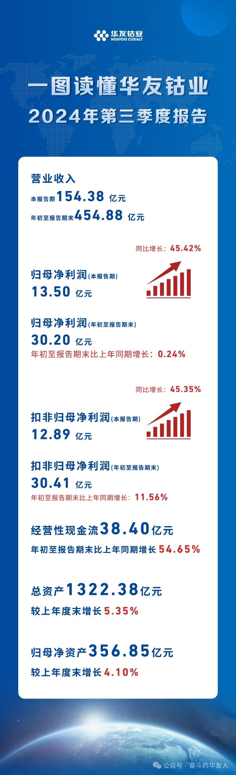 單季歸母凈利潤13.50億元,同比增長45.42%!華友鈷業(yè)2024年第三季度報告發(fā)布