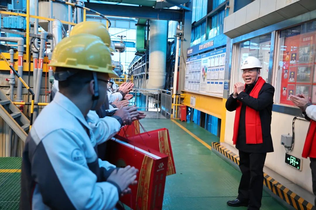 陳董一行先后來(lái)到華友有色(桐鄉(xiāng))公司、總部行政安保和后勤食堂等,每到一處,陳董都親切地與堅(jiān)守在一線的同事們一一握手,對(duì)大家一年來(lái)的辛勤付出表示感謝,同時(shí)希望大家在2025年里再接再厲,干好“十四五”謀劃“十五五”,推動(dòng)公司在高質(zhì)量發(fā)展中穩(wěn)步前進(jìn)。