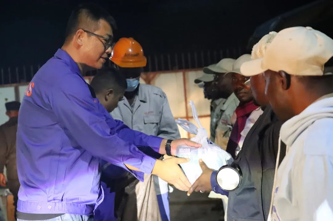 非洲資源產(chǎn)業(yè)集團(tuán)領(lǐng)導(dǎo)一行,帶著公司滿滿的關(guān)懷,奔赴各個(gè)值班崗位。每到一處,領(lǐng)導(dǎo)們都與員工親切握手,將承載著美好祝福的紅包和物資送到他們手中,讓堅(jiān)守在異國(guó)他鄉(xiāng)的員工們感受到家一般的溫暖。