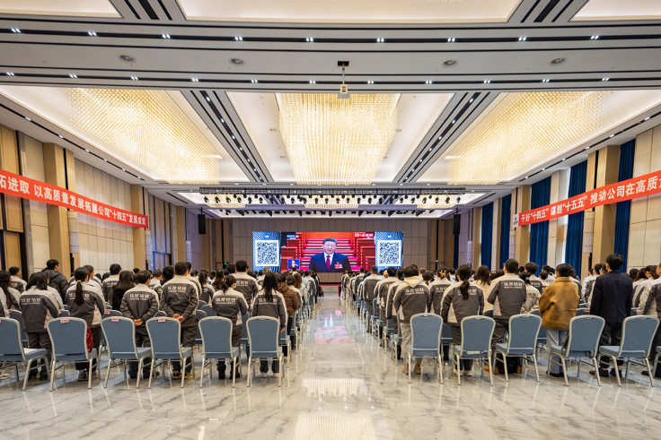 華友總部全體黨員及各職能部門(mén)部分干部員工集中收看開(kāi)幕會(huì),公司各產(chǎn)業(yè)集團(tuán)各地子公司、單位均在各自駐地組織觀(guān)看、學(xué)習(xí)。國(guó)務(wù)院總理李強(qiáng)代表國(guó)務(wù)院向大會(huì)作政府工作報(bào)告,全面總結(jié)了過(guò)去一年的工作成就,并對(duì)2025年的經(jīng)濟(jì)社會(huì)發(fā)展提出了明確的目標(biāo)和規(guī)劃,報(bào)告中提到的科技創(chuàng)新、產(chǎn)業(yè)升級(jí)、民生保障等內(nèi)容,讓員工們深刻感受到國(guó)家發(fā)展的強(qiáng)勁動(dòng)力和民生福祉的持續(xù)提升,也為華友高質(zhì)量發(fā)展指明航向。