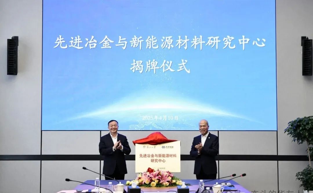 ▲郭海書記與陳雪華董事長共同為先進(jìn)冶金與新能源材料研究中心揭牌。